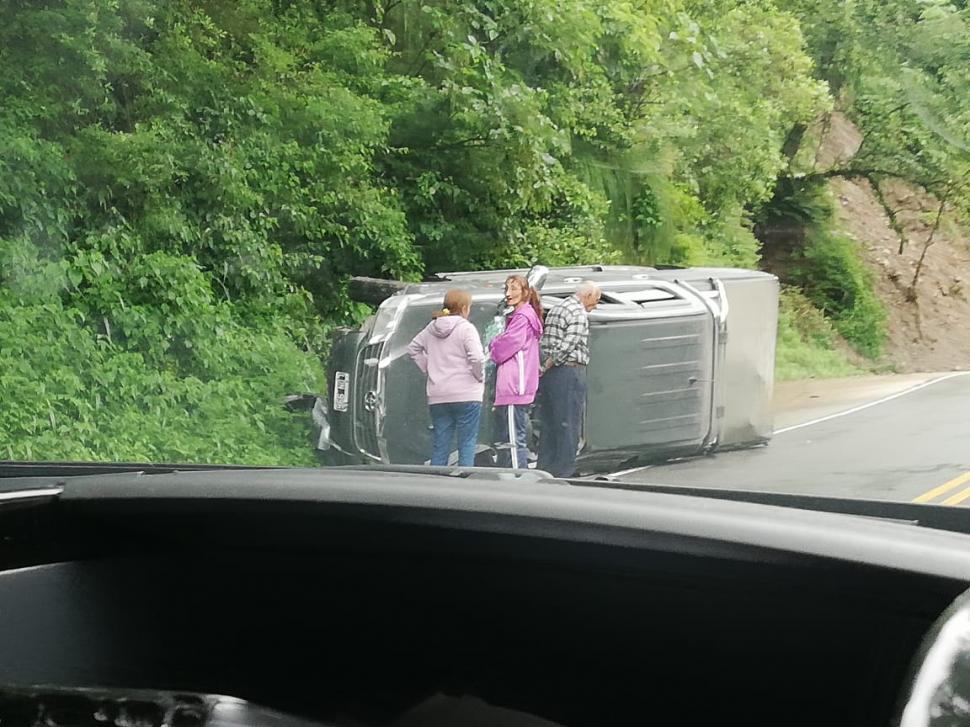 Los propios conductores se sorprendieron al ver una camioneta que volcó en la misma ruta. A unos 10 kilómetros más arriba, de donde se produjo el derrumbe, el vehículo quedó pegado a la montaña tras un accidente.