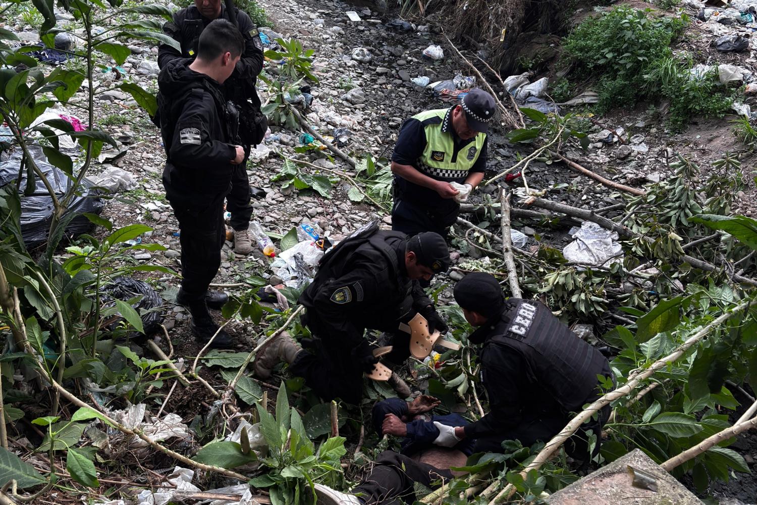 “Tras ochos horas tensas de negociación, este sujeto no desistió de su actitud llegando a la extrema decisión de autoflagelarse con el arma blanca en zona de su tórax y cuello, tomando luego de esto la determinación de arrojarse al vacío de aproximadamente unos 20 metros de altura, callendo pesadamente sobre la maleza del lugar. De inmediato se procedió al descenso con un equipo de rescate (camillas, cuello ortopédico y de más elementos) a los fines de su extracción e inmediata atención por personal del Siprosa, siendo luego trasladado a un hospital de San Miguel de Tucumán”, informó el oficial subayudante Mariano Castañares.