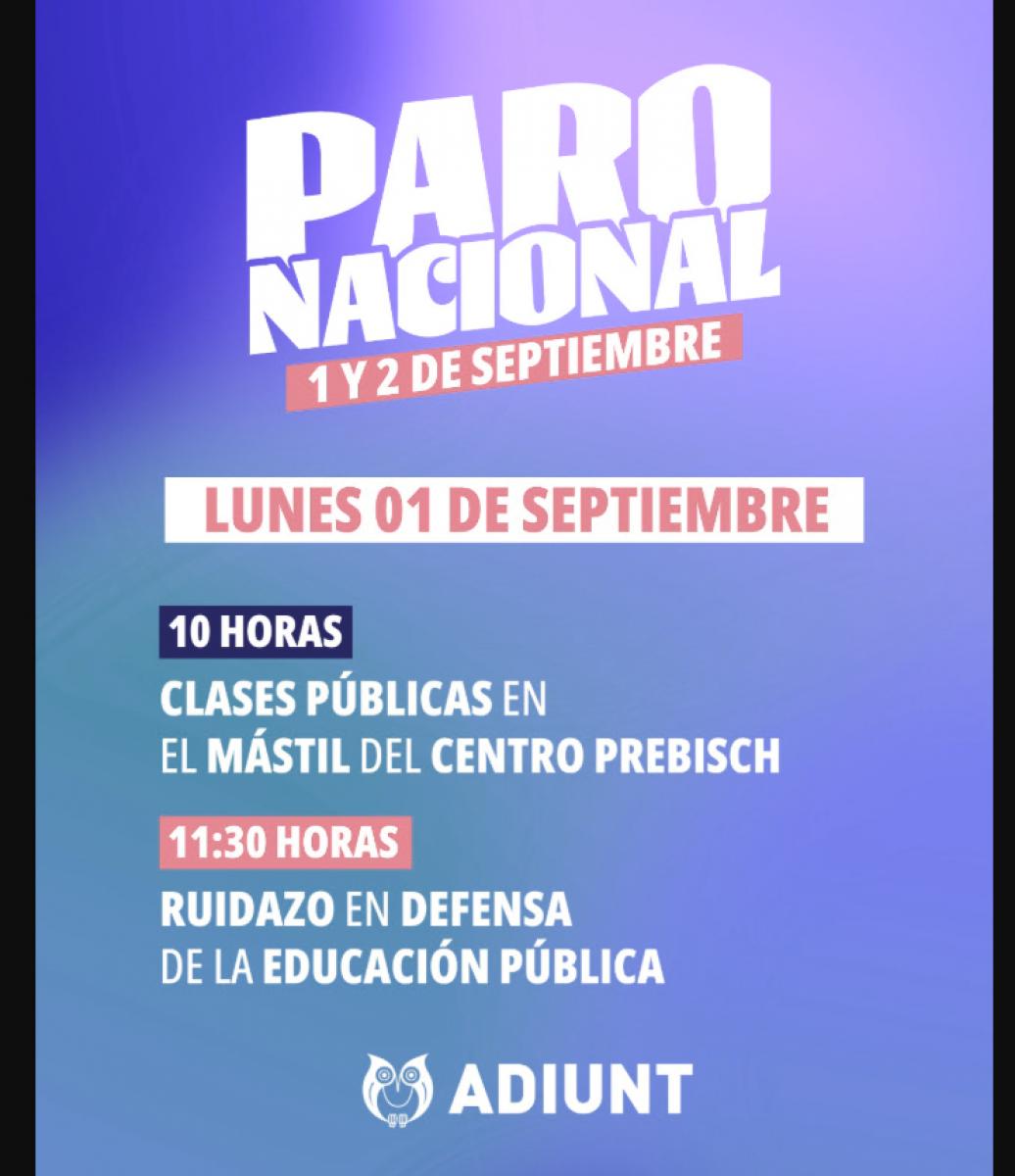 Desde ADIUNT convocamos a toda la docencia, al estudiantado y a la comunidad universitaria a sumarse activamente a estas actividades para sostener y fortalecer esta lucha.