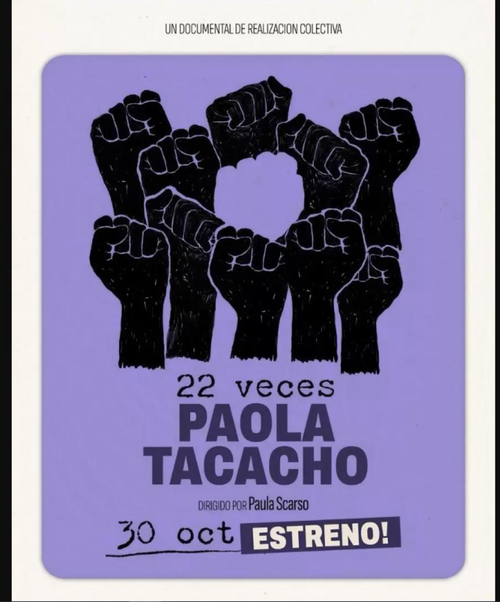 El documental colectivo “22 veces Paola Tacacho”, dirigido por Paula Scarso, se estrenará el jueves 30 en una función especial y cerrada en la Sala Orestes Caviglia. “Es para la familia, al equipo de realización y a las personas que acompañaron la lucha desde el primer momento”, detalló la directora.
