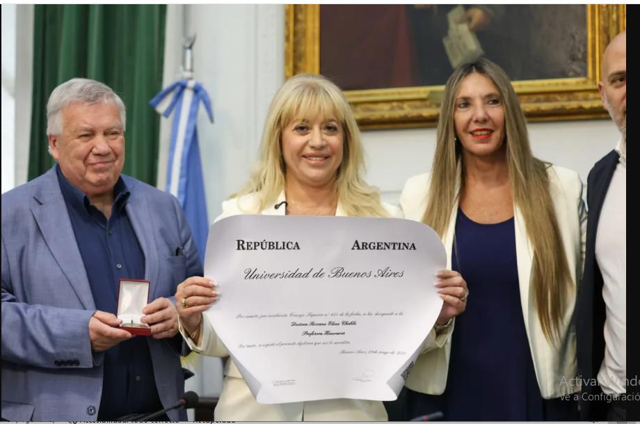 En una ceremonia realizada este miércoles en la Ciudad Autónoma de Buenos Aires, la intendente Rossana Chahla fue distinguida con el título de Profesora Honoraria por parte de la Universidad de Buenos Aires (UBA), en reconocimiento al trabajo realizado en sus dos primeros años de gestión al frente de la Municipalidad de San Miguel de Tucumán y por su trayectoria profesional como médica.