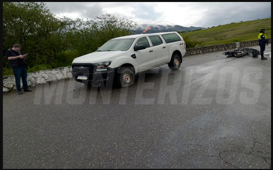 El accidente se produjo alrededor de las 17:23 y fue protagonizado por una motocicleta Royal Enfield Himalayan 411 cc y una camioneta Ford Ranger 4x4. En el rodado menor se desplazaban Guillermo Sebastián Juárez, de 43 años, quien conducía el vehículo, y María Lucía Boffano, ex directora de Turismo de Monteros.