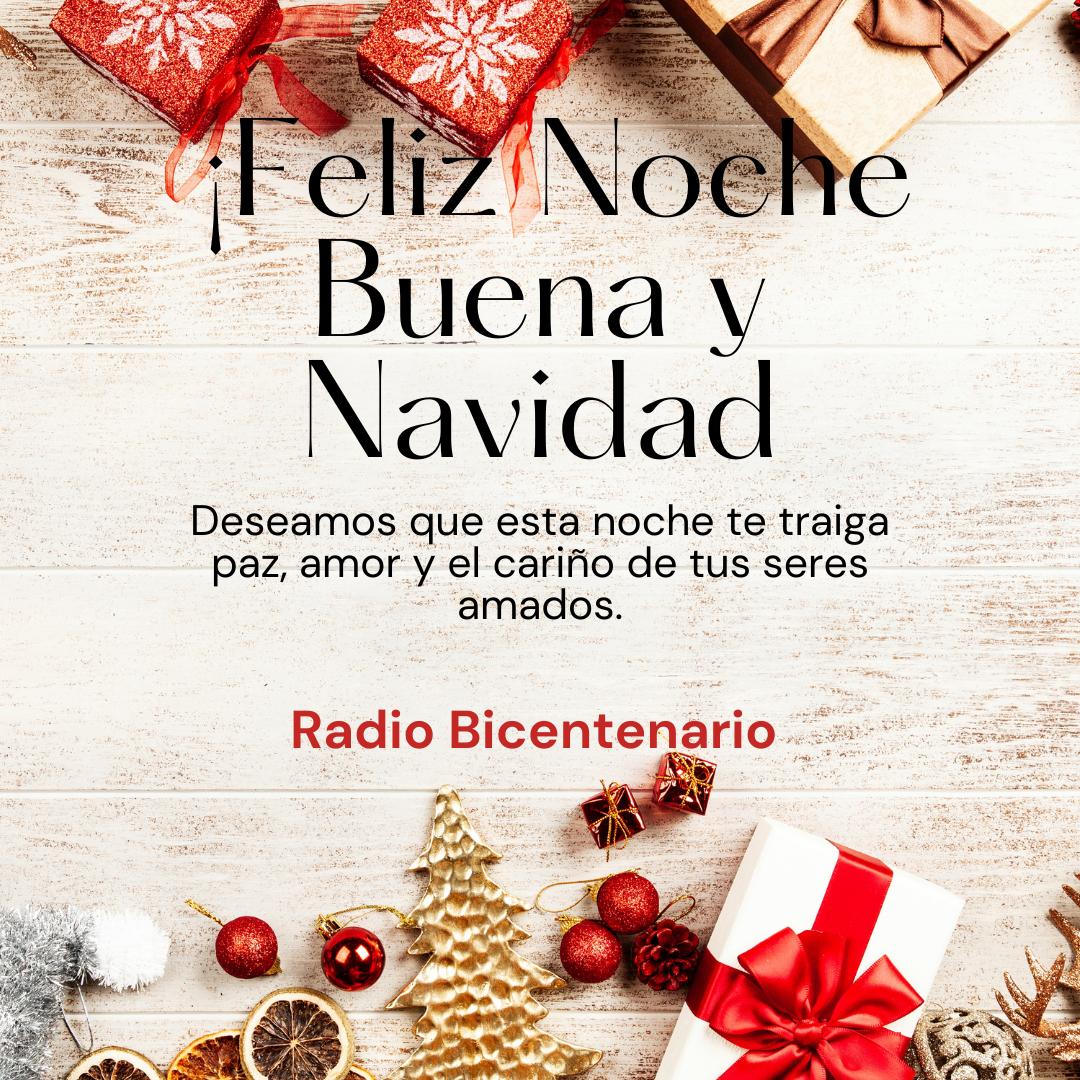 Todo el equipo que trabaja en nuestra querida Radio Bicentenario te desea unas felices fiestas en paz y armonía, brindando por nuestros seres queridos que están presentes y los que siempre recordaremos y de alguna manera estarán presentes en la mesa navideña.