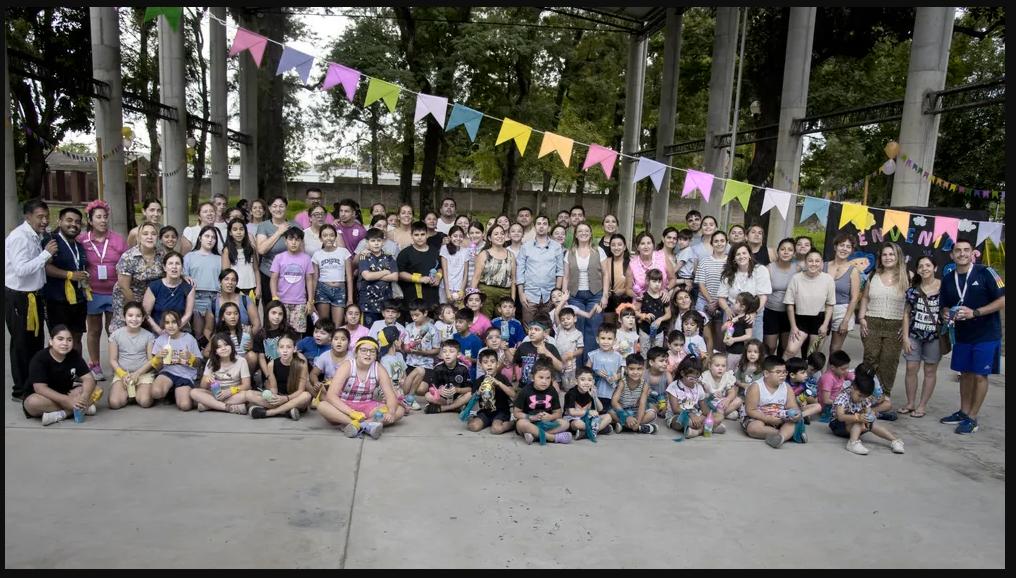 Chicos de entre 4 y 11 años de distintos barrios participan de actividades recreativas, deportivas y lúdicas en el Predio Municipal Zenón Santillán, en calle Colombia al 3.200