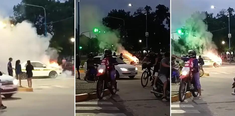 Un taxi se prendió fuego por completo este viernes en el Parque 9 de Julio, lo que provocó momentos de pánico entre el conductor y las personas que se encontraban en la zona.