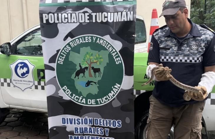 Personal de la División Delitos Rurales y Ambientales Norte N° 4 se hizo presente en el barrio Lomas de Tafí luego de que una familia solicitara asistencia para realizar la entrega voluntaria de un reptil que había ingresado a su vivienda, con el fin de resguardar la seguridad de sus hijos menores.
