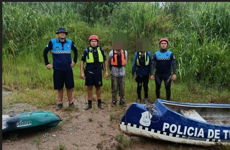 Este lunes, personal de la División Policía Lacustre del Destacamento El Cadillal rescató a dos hermanos de 14 y 17 años que se encontraban varados en el Río Salí, en la localidad de García Fernández.