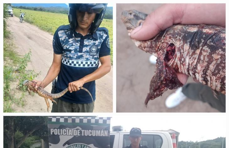 Asimismo, mientras recorrían otra zona cercana al Cadillal, observaron en un camino de tierra otro animal, del mismo ejemplar, que tenía una de sus patas lastimadas. Los efectivos no dudaron en trasladarlo hacia el asiento físico de su base y comunicaron la situación a la División de Flora y Fauna Silvestre, que dispuso el traslado del mismo hacia la veterinaria que pertenece a dicha división para su asistencia.