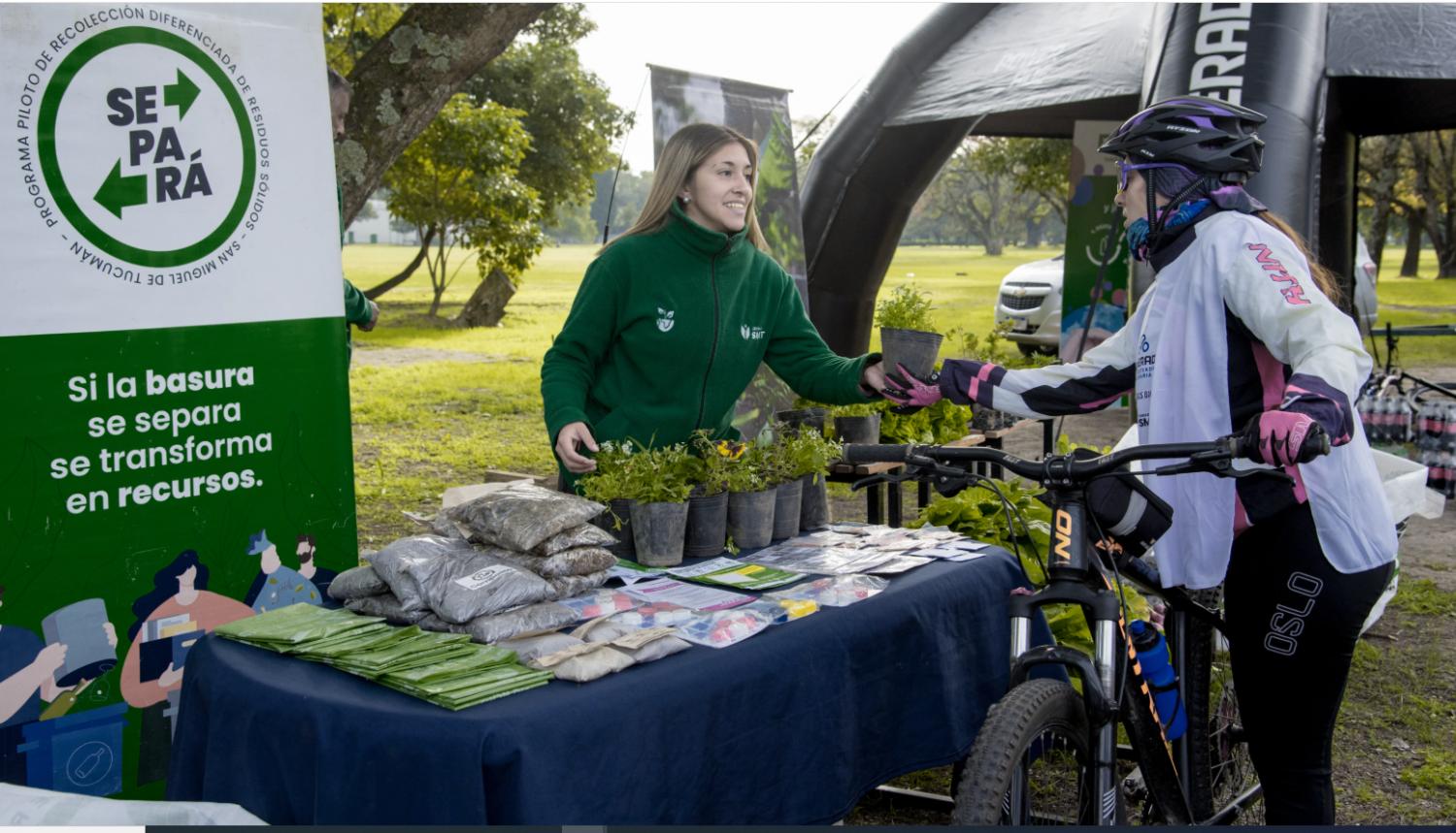 En el puesto del programa municipal SE-PA-RÁ los vecinos pueden intercambiar residuos reciclables por plantines y tierra abonada, entre otros presentes