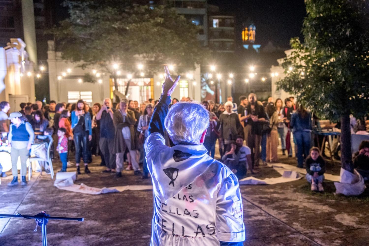 Con la participación de más de 40 representantes de distintas expresiones artísticas, como el canto, la danza y las artes visuales, la performance colectiva y participativa invitó a la intervención activa en el proceso de hacer memoria mediante la reflexión y la experiencia compartida.