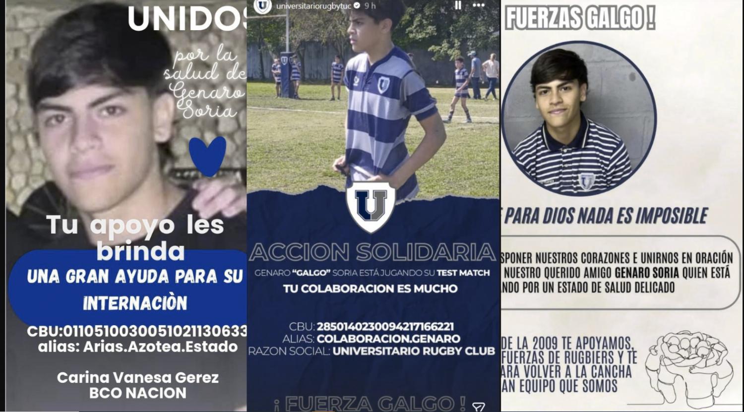 Genaro Soria, un joven tucumano de 16 años y jugador del Club Universitario, atraviesa un delicado momento de salud. Ante esta situación, desde la institución pusieron en marcha una red solidaria bajo el lema “Unidos por Genaro”, con el objetivo de colaborar con los gastos que demanda su internación.