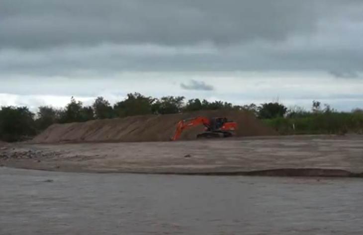 En paralelo, se trabajó con equipamiento específico en los puntos críticos. Se trasladó una retroexcavadora para intervenir en el alteo del talud en la zona donde se produjo el desborde, además de ejecutar un corte sobre un banco de arena para dividir el flujo del agua en dos brazos y reducir riesgos a futuro.