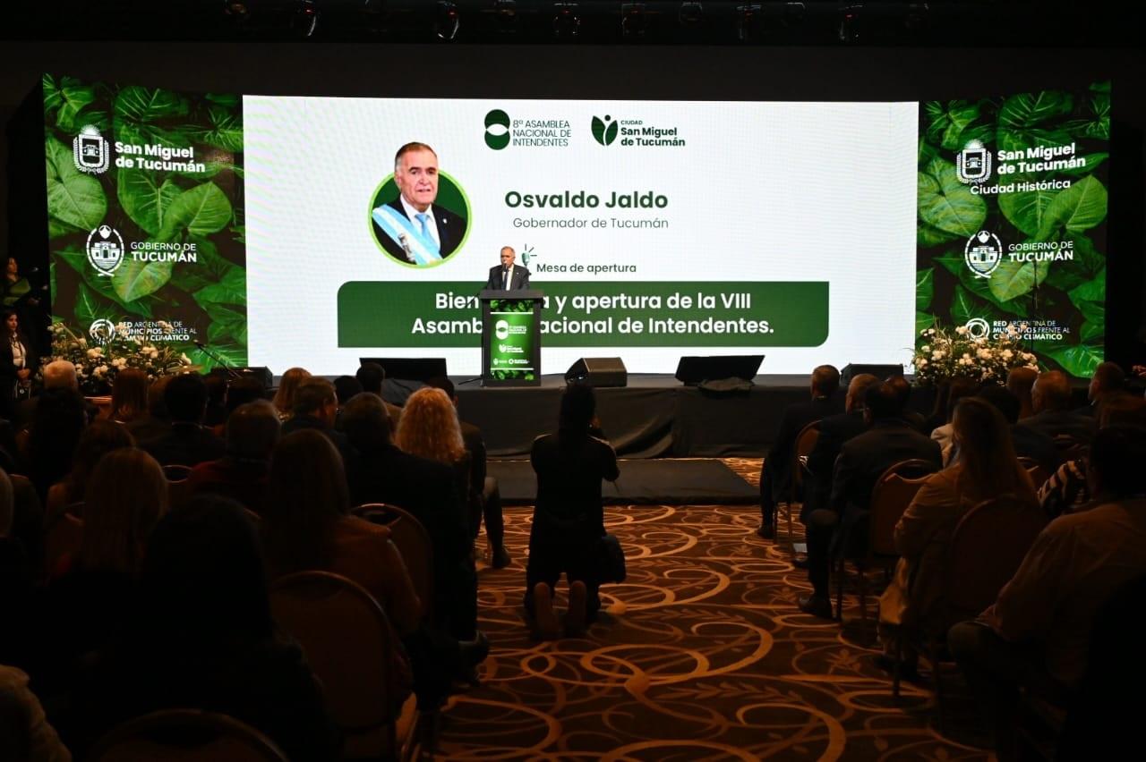 El gobernador, Osvaldo Jaldo, encabezó el acto de apertura del VIII Asamblea Nacional de Intendentes 2026 de la Red Argentina de Municipios frente al Cambio Climático (RAMCC). El encuentro que por primera vez se desarrolló en San Miguel de Tucumán y en el norte argentino se celebra en el Hotel Sheraton.
