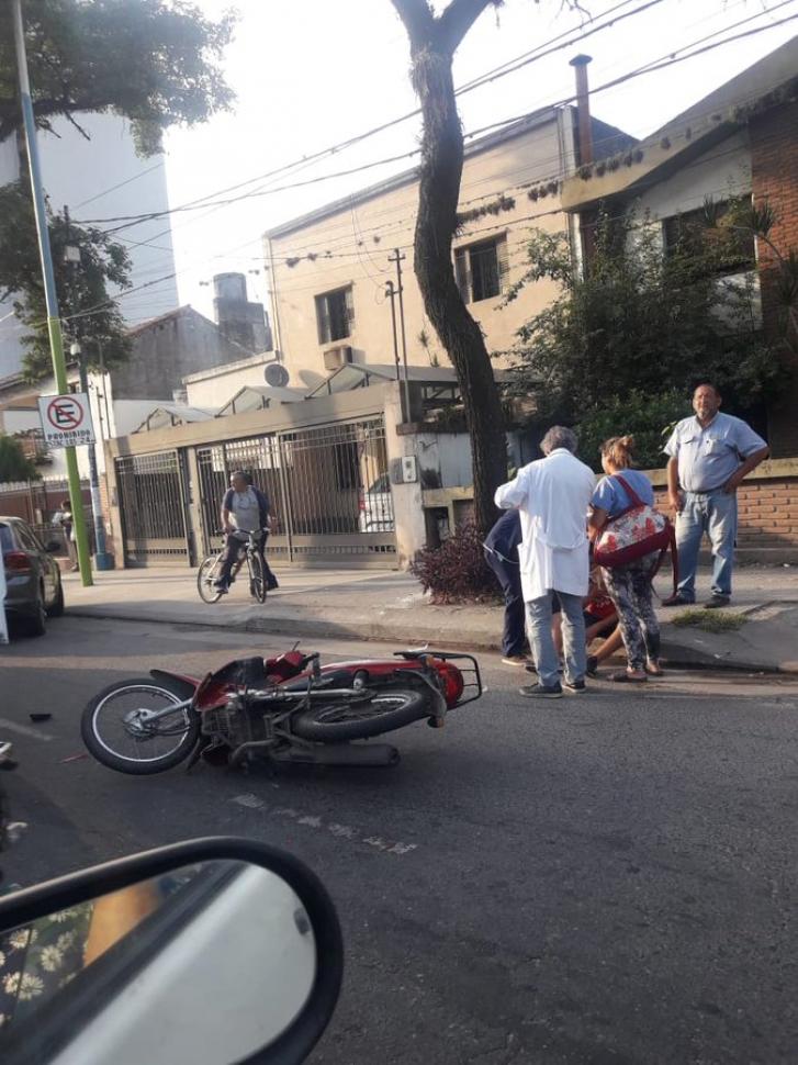 En las primeras horas de este martes se produjo un siniestro entre un vehículo y una moto en Avenida Mate de Luna al 1500 frente al Instituto de Maternidad y Ginecología Nuestra Señora de las Mercedes.